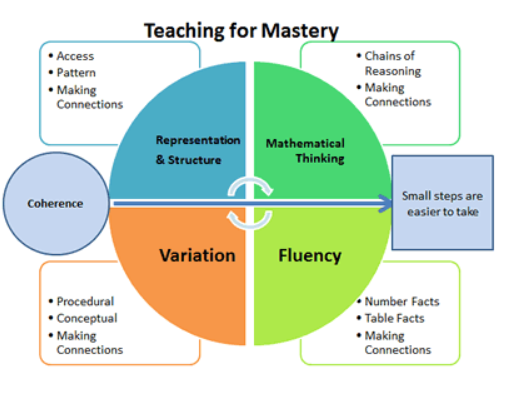 This approach to teaching maths means that instead of learning mathematical procedures by rote, pupils develop a deeper understanding of mathematical concepts. This will enable them to make connections and apply their learning in different situations. Mastery is developed through the ‘Five Big Ideas’. These are: